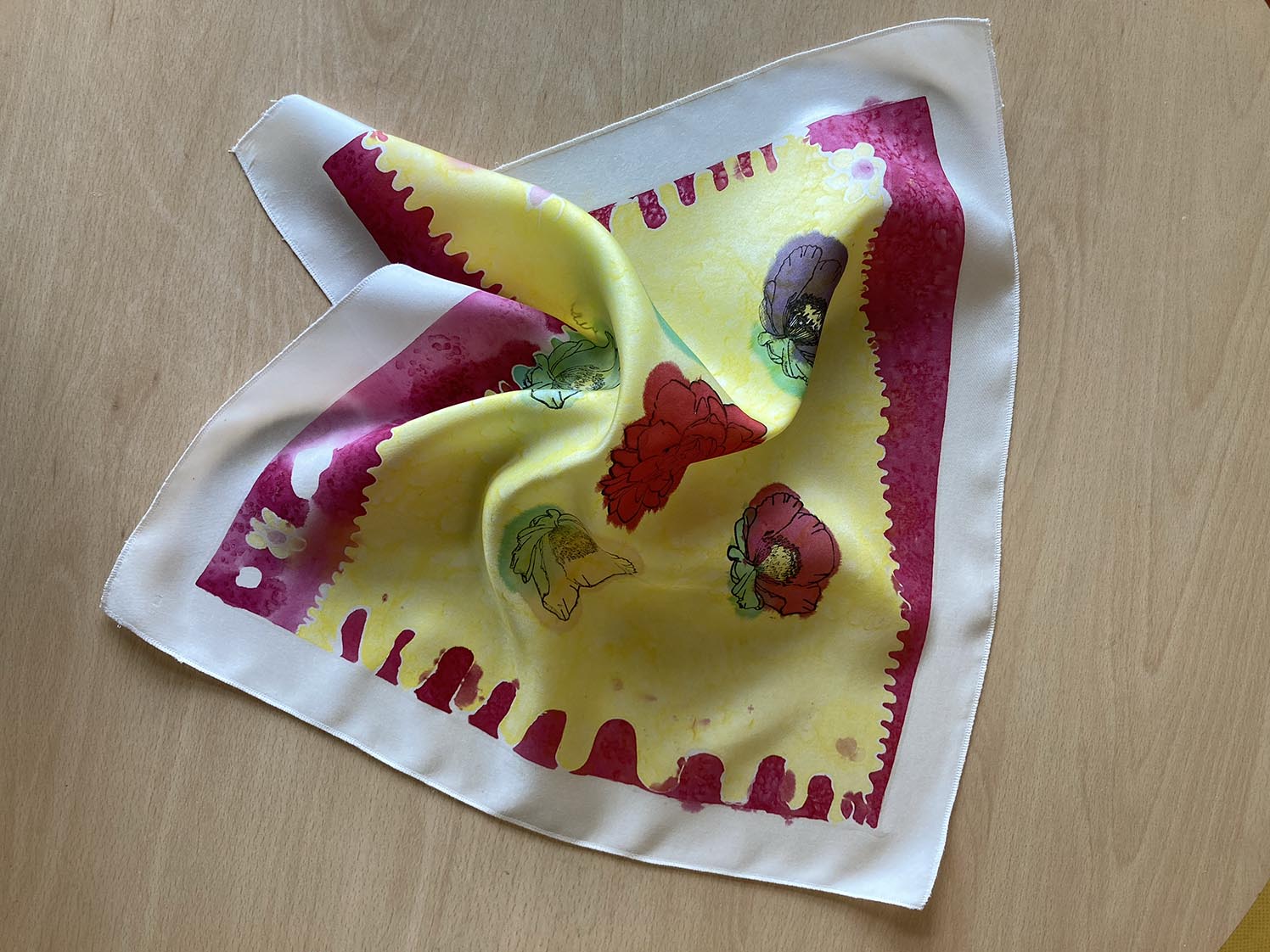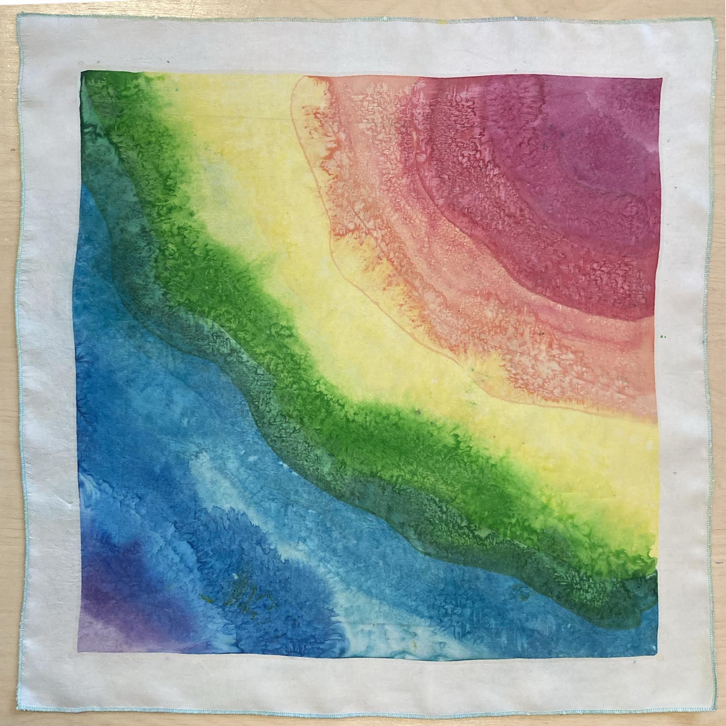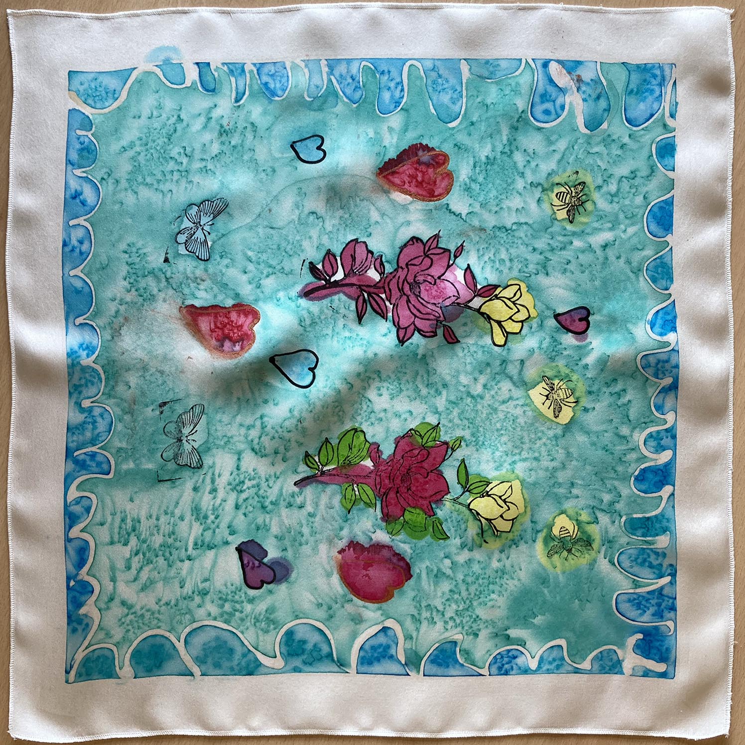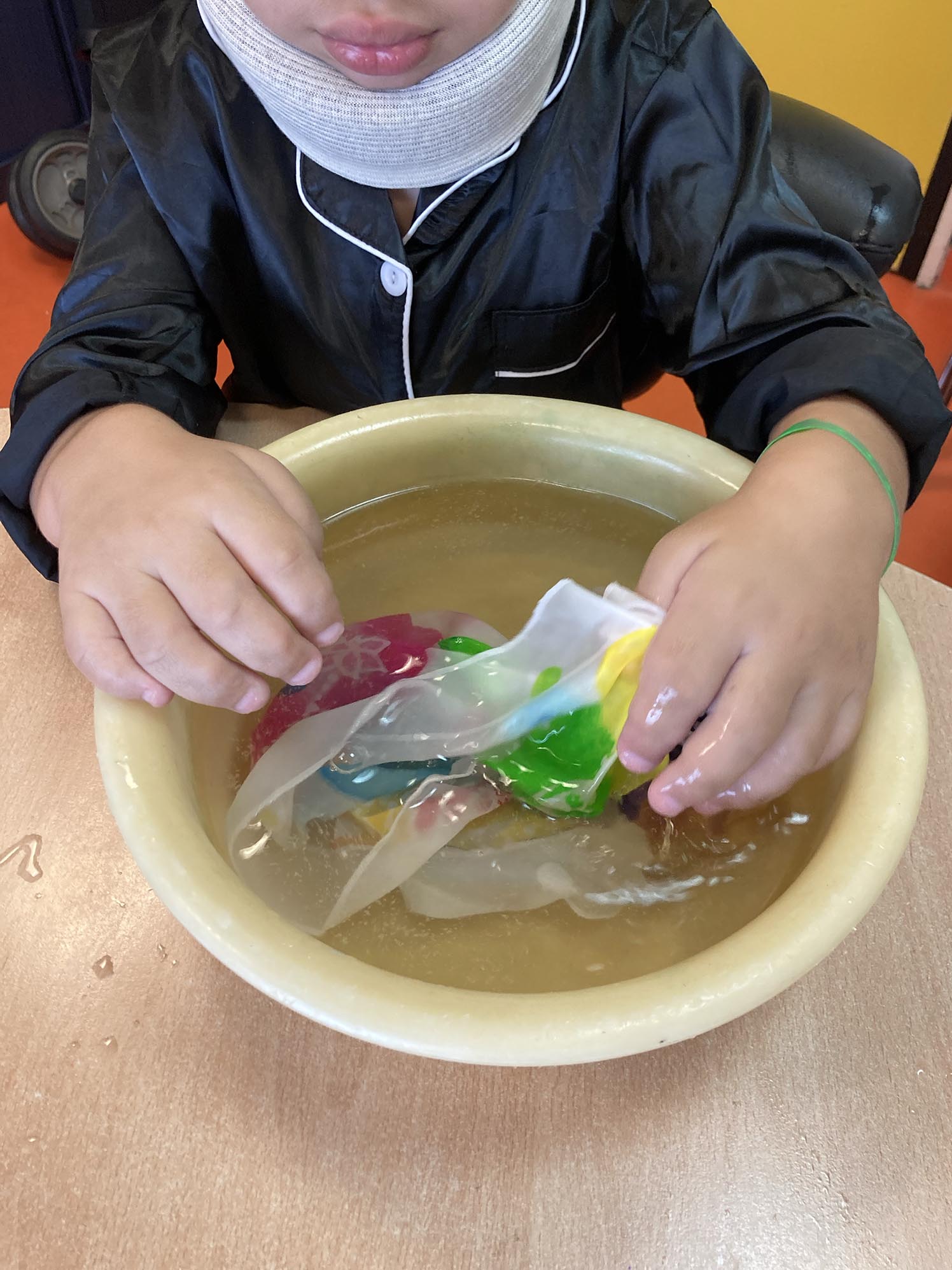 Jeudi 9 octobre 2025 dans le service des maladies du métabolisme à l’hôpital HFME. Nouvel atelier peinture sur soie auquel participent Inès 12 ans, Alice 10 ans, Sabeena 10 ans et Maya 13 ans.