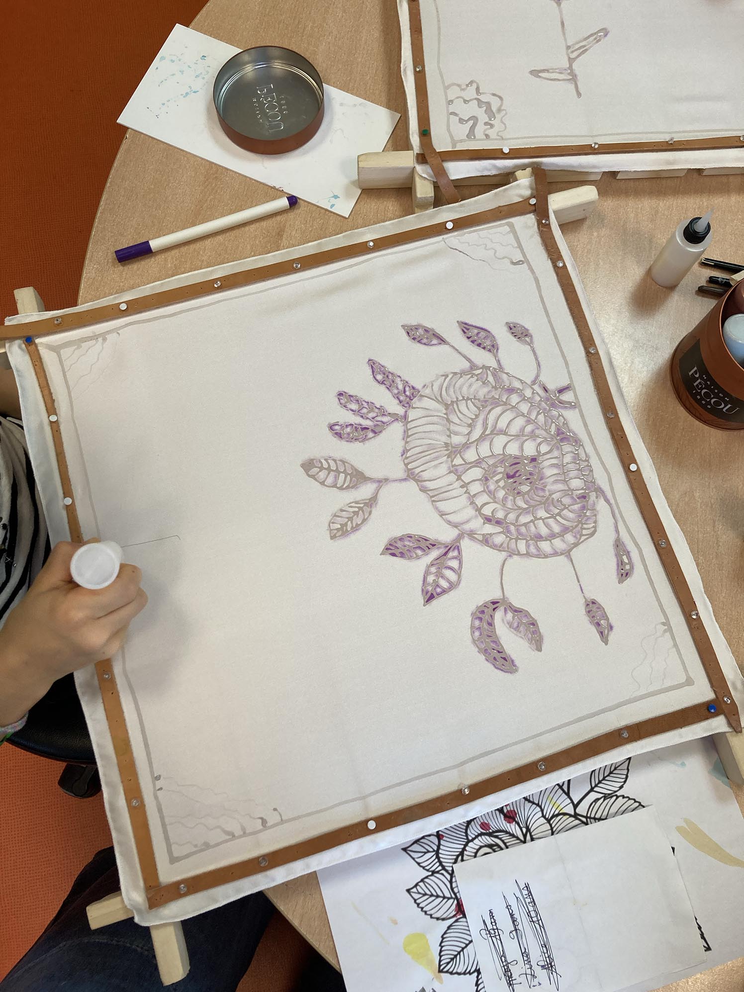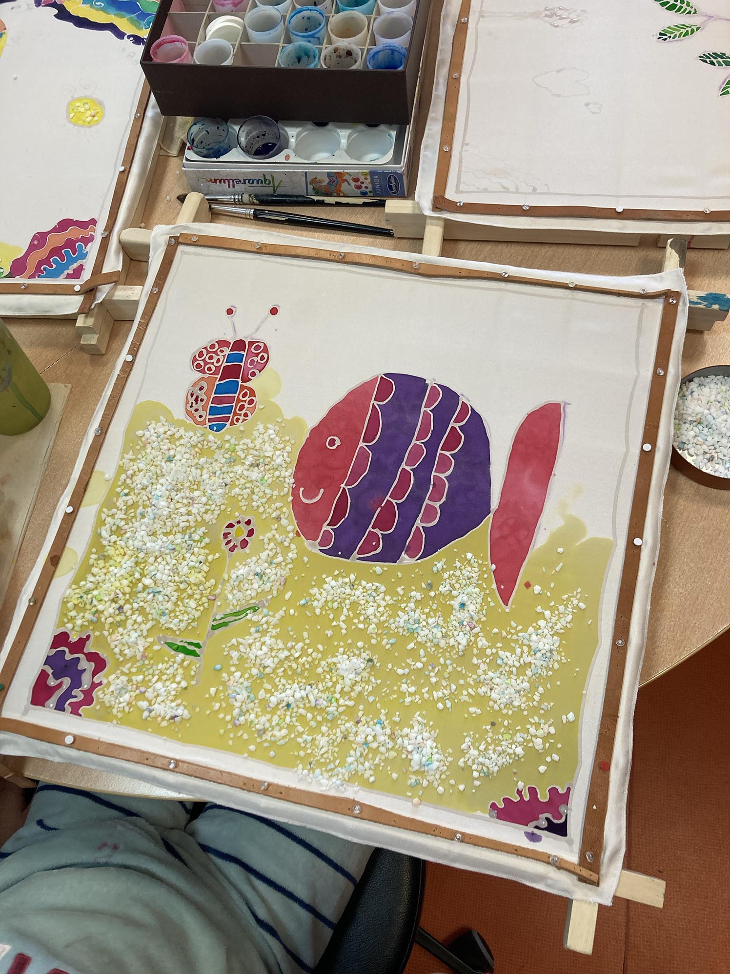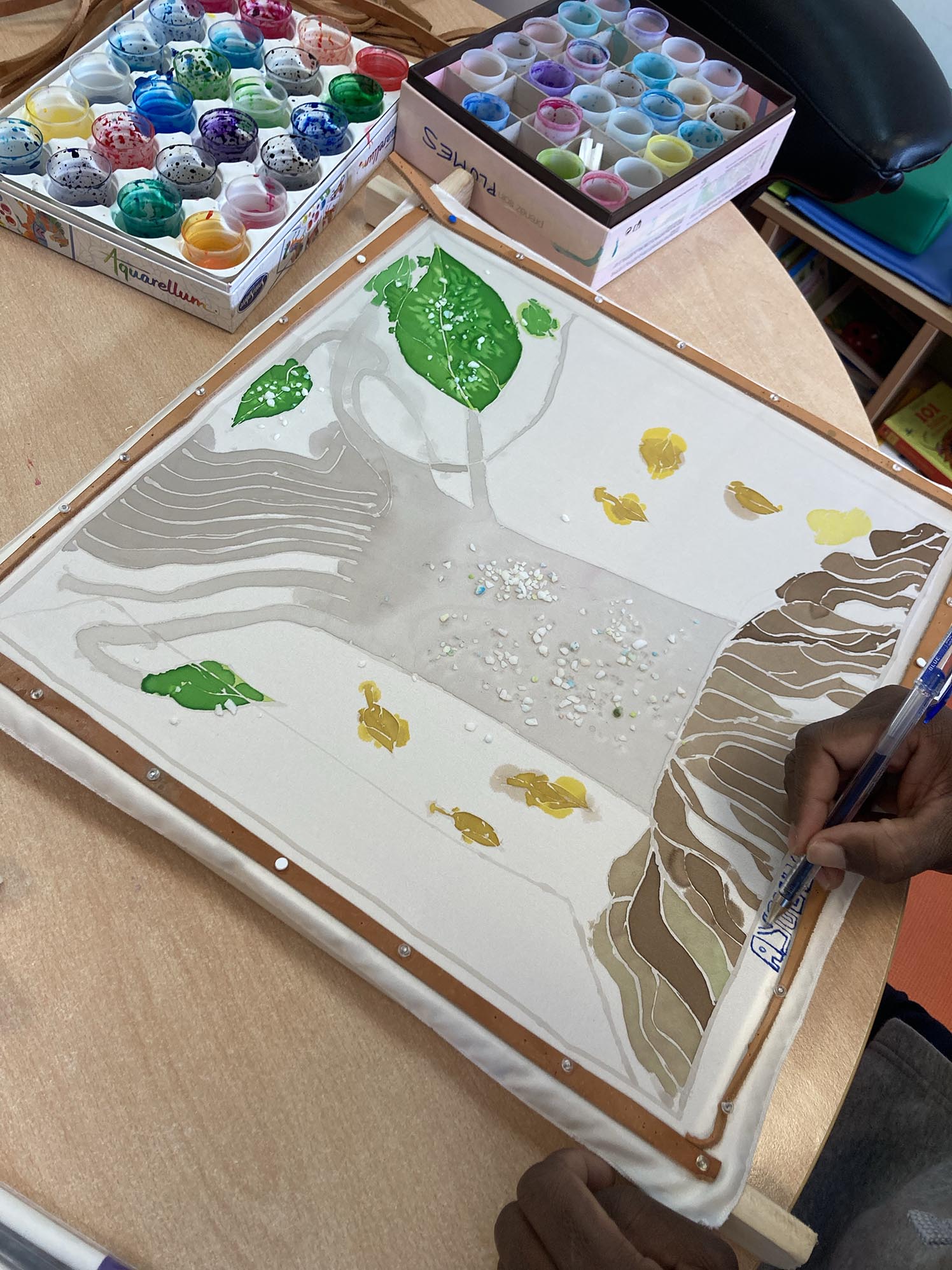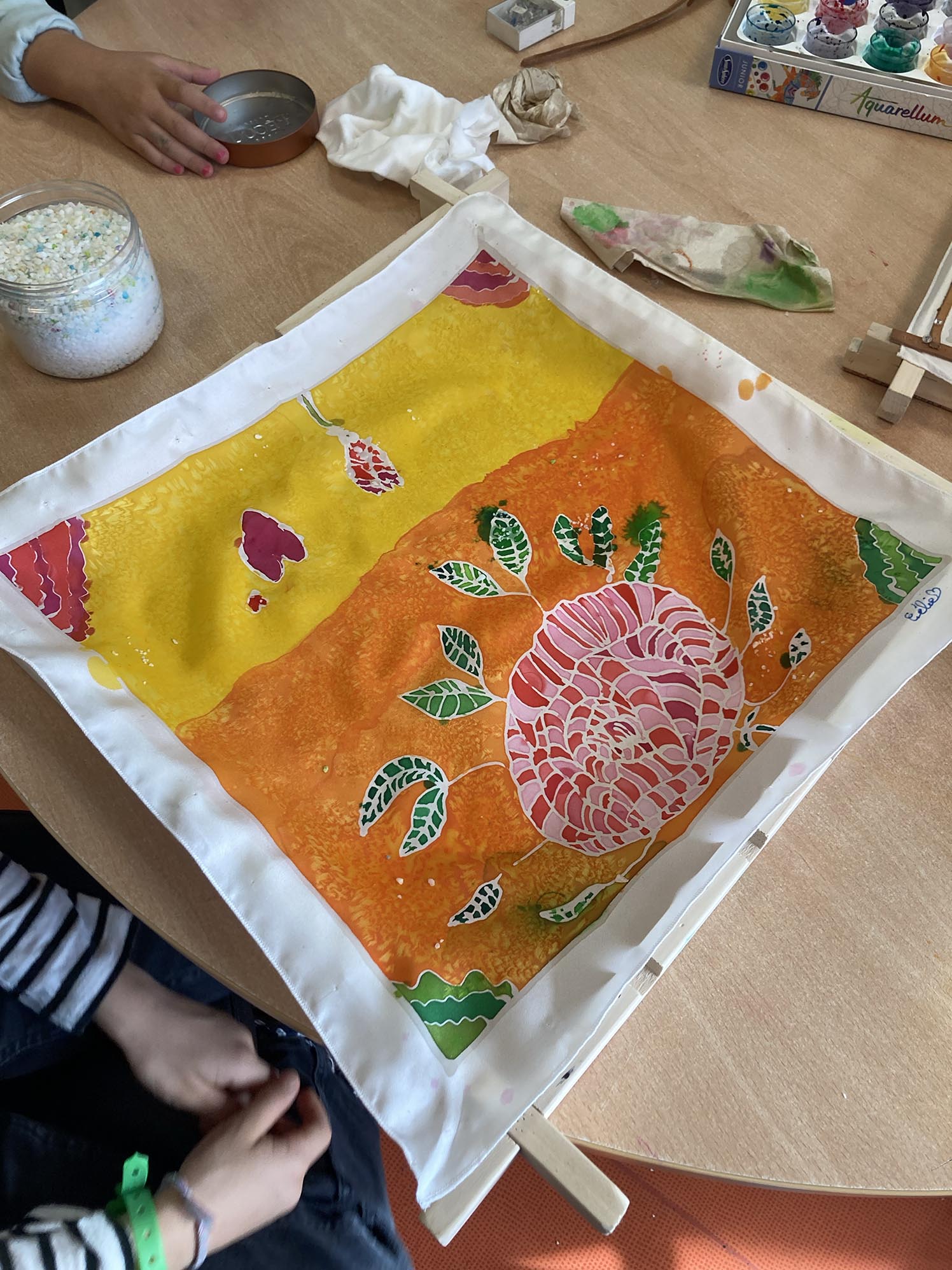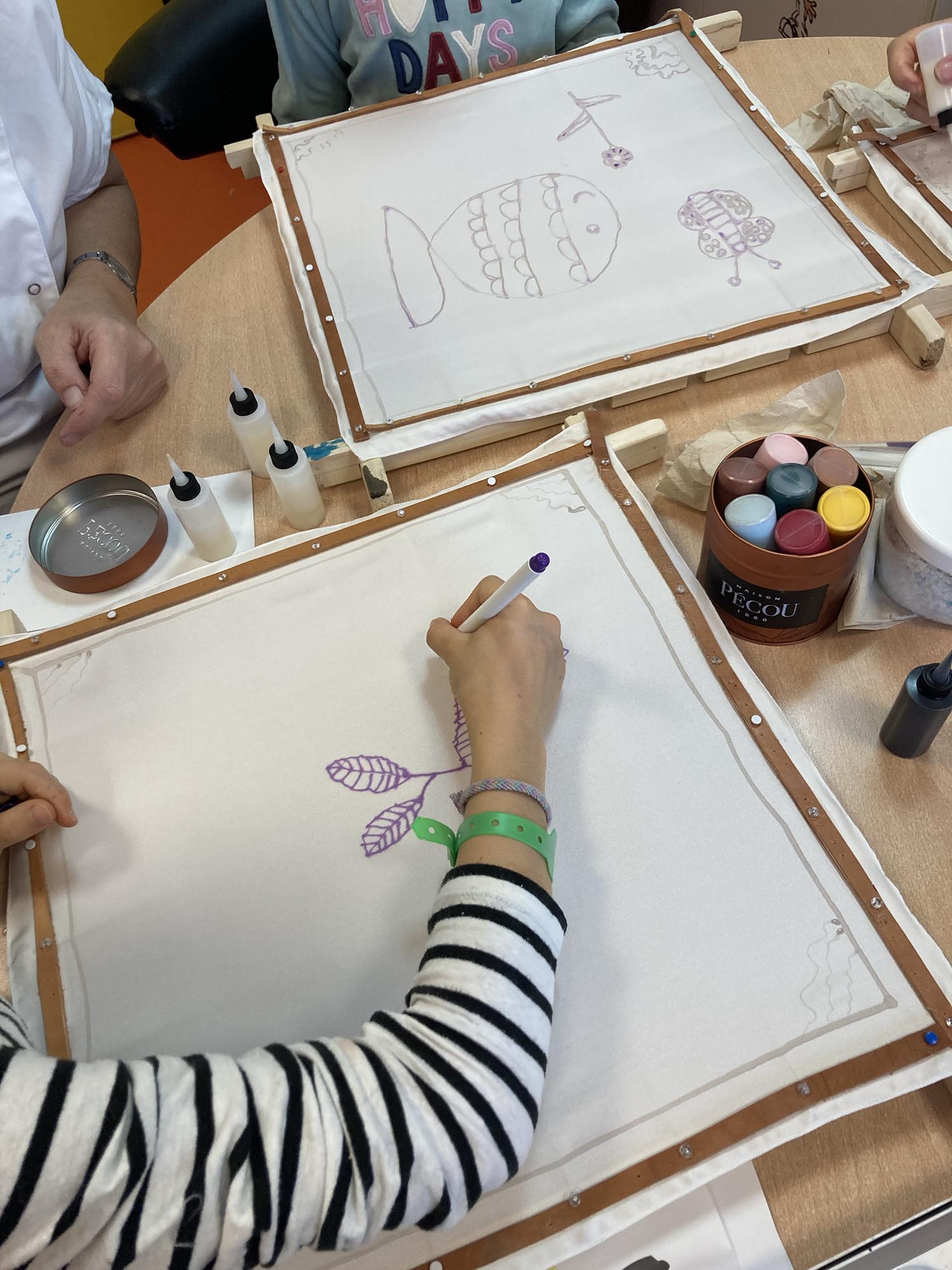 Jeudi 6 novembre 2025 – Nouvel atelier de peinture sur soie avec les enfants hospitalisés dans le service des maladies du métabolisme à l’hôpital HFME.
