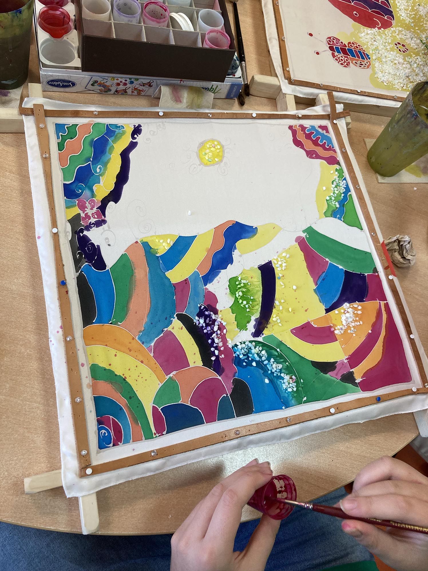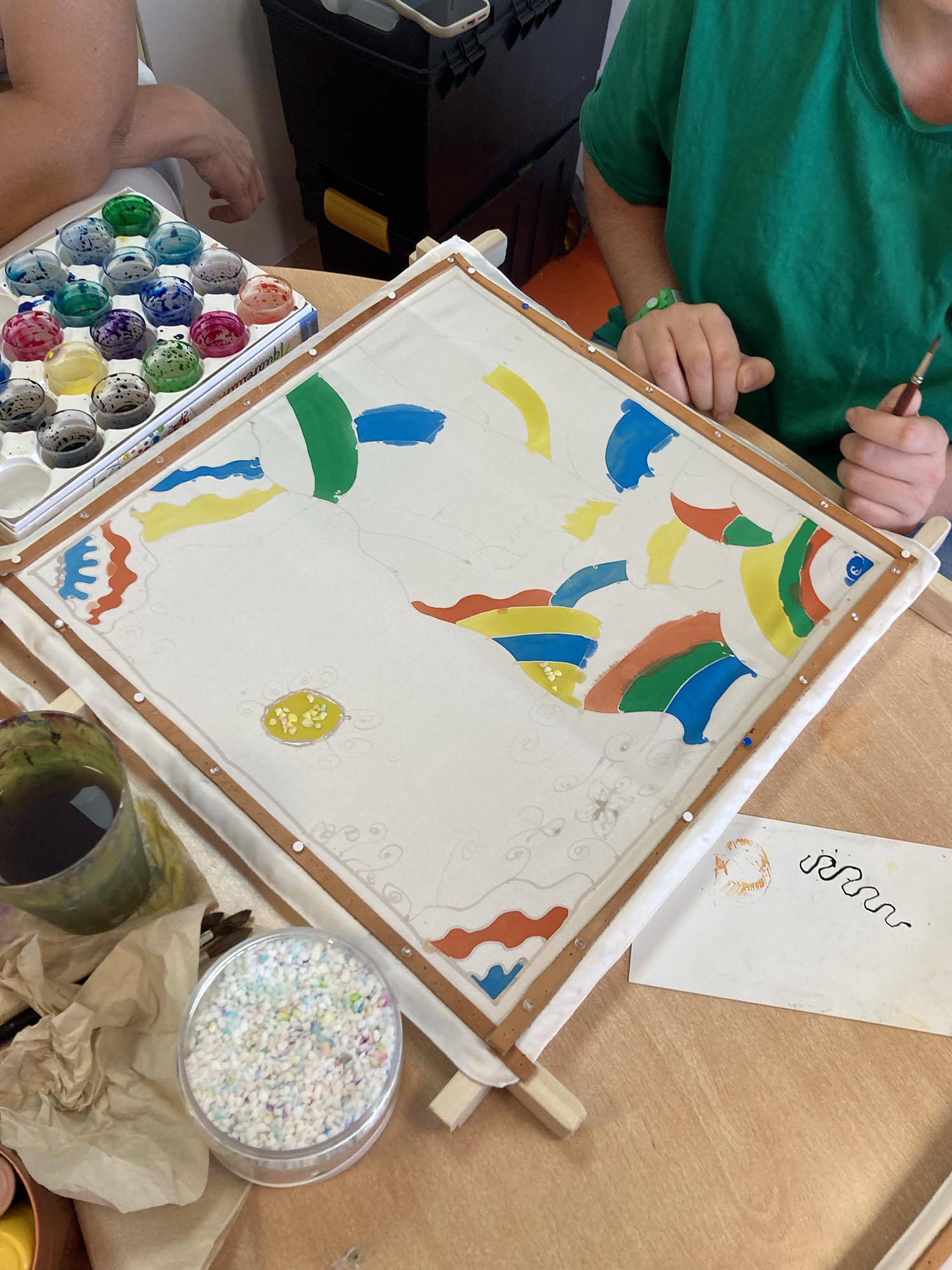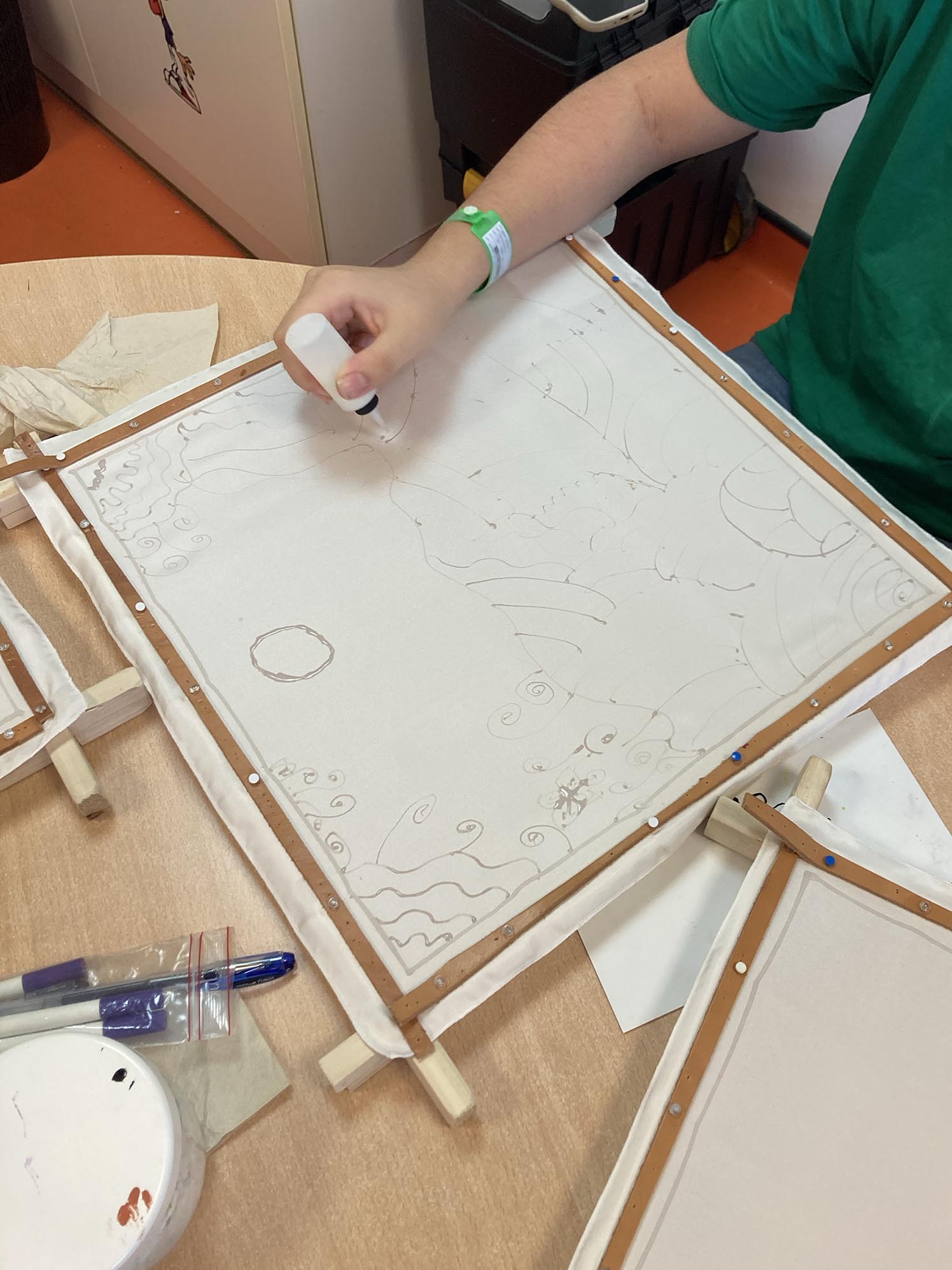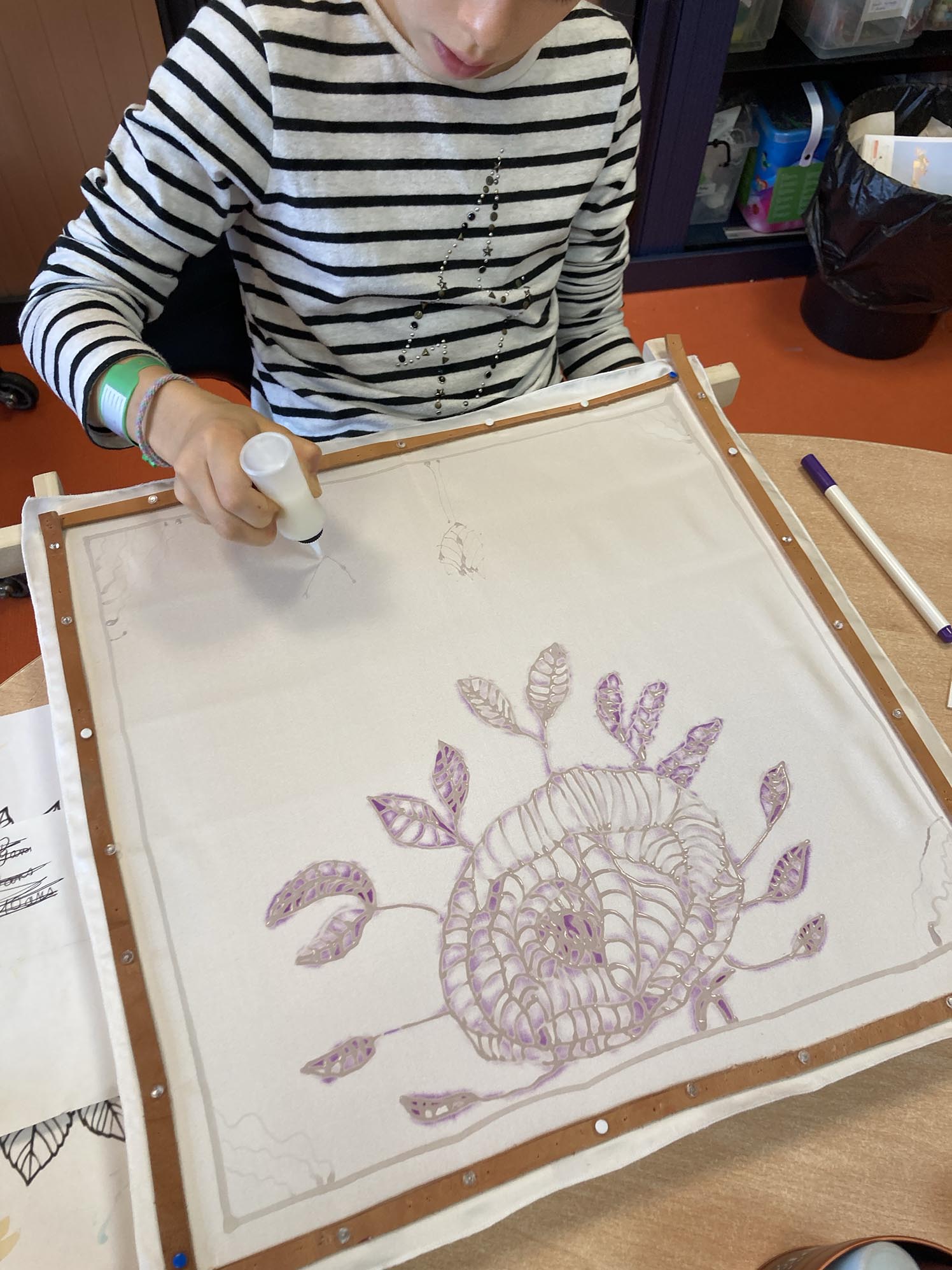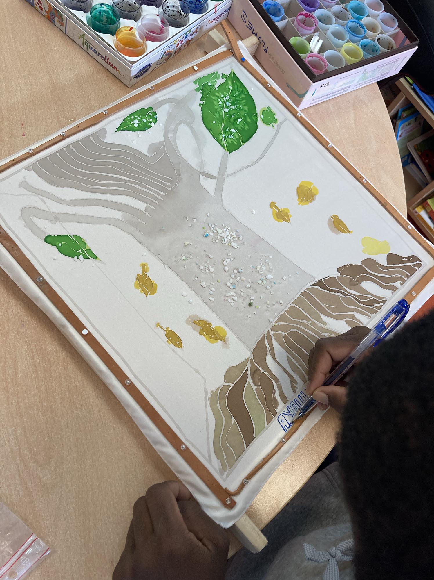 Jeudi 6 novembre 2025 – Nouvel atelier de peinture sur soie avec les enfants hospitalisés dans le service des maladies du métabolisme à l’hôpital HFME.