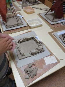 Ils sont parti d’une plaque d’argile dans laquelle ils pouvaient piquer des élément de structure. Ils avaient aussi la possibilité de découper des briques dans de l’argile fraiche pour monter murs et murets.