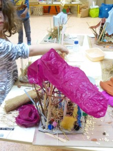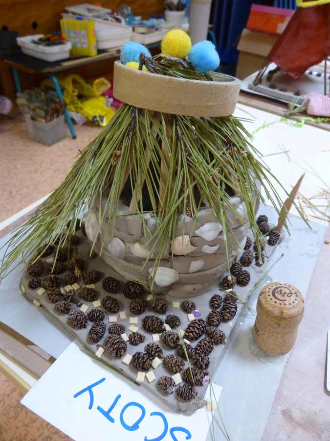 Tout comme les enfants de petite section, les enfants de grande section de l’école maternelle Viala ont aussi construit une maquette d’habitat. Comme ils ont étudié les habitats du monde, ils ont construit des huttes, des tipis et des igloos à partir de matériaux qu’ils ont collectés.