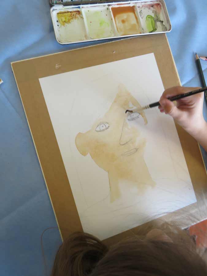 Les portraits à l’aquarelle de Losif 13 ans, Salma 10 ans et Kenan 16 ans.