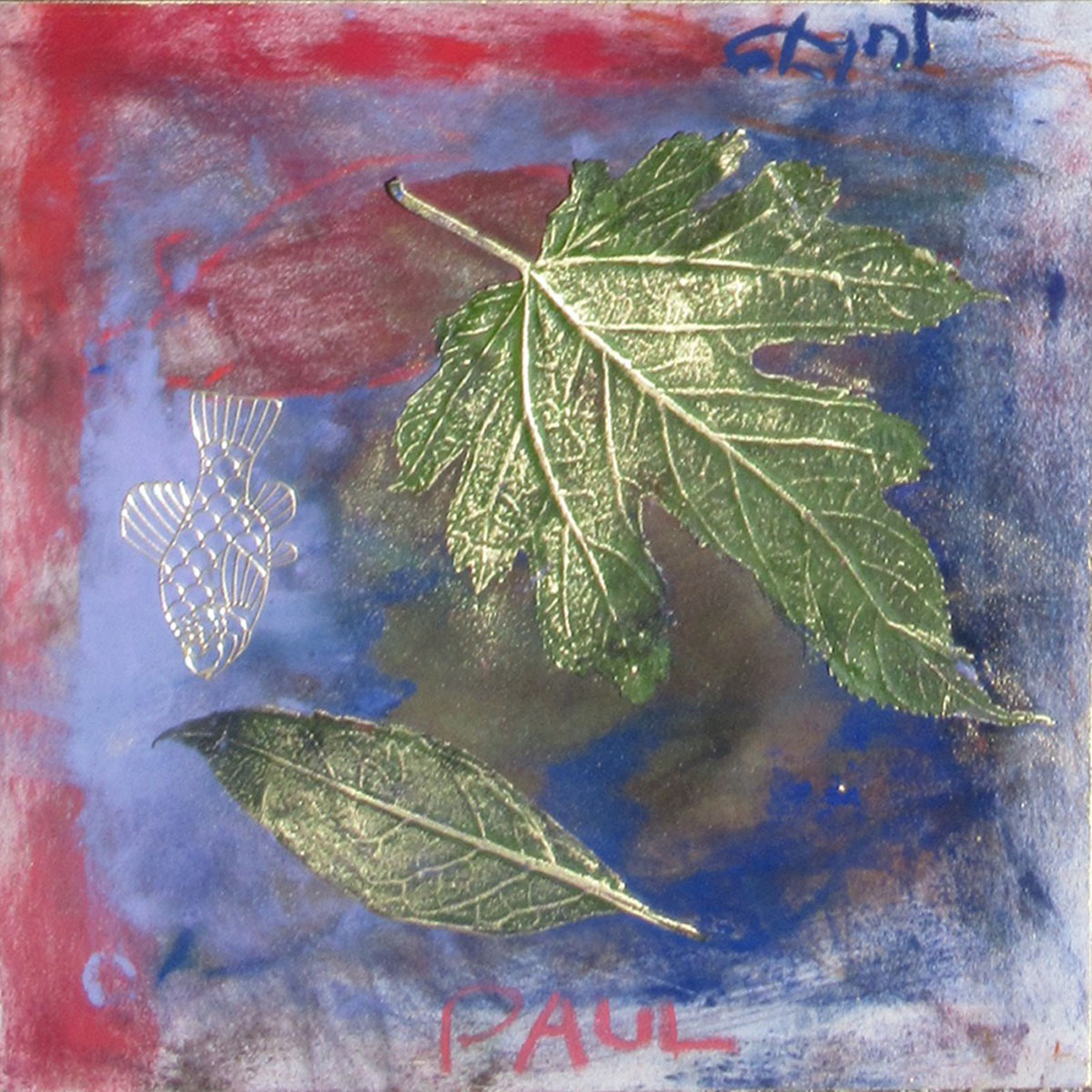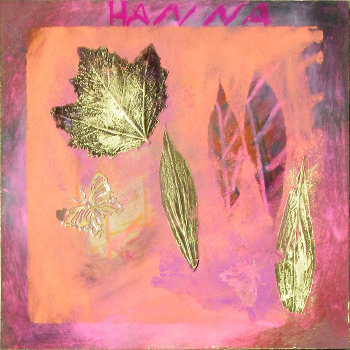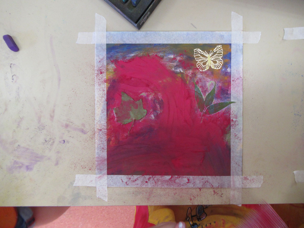 Masquer son dessin avec les feuilles d’arbre et le contour du tableau avec du ruban de masquage et peindre de nouveau tout le format …