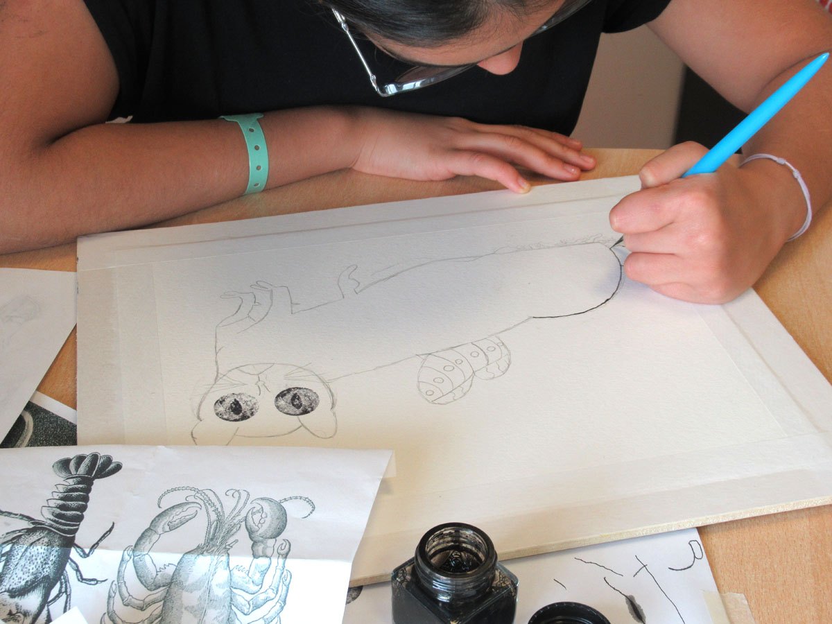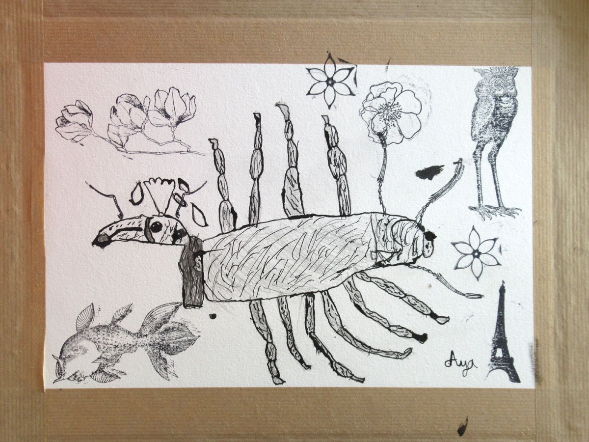 Mardi après-midi 14 mars 2023, nouvel ateliers artistiques proposés aux enfants du service des maladies du métabolisme à l’hôpital Femme Mère Enfant : inventer et dessiner une créature hybride à partir d’animaux existants … et de tampons d’yeux de chat ! Ont participé à cet atelier : Delia, 11 ans, Rymen, 12 ans, Faustine, 16 ans, Illyana, 14 ans, Nolan 7 ans, Jasmine 7 ans et Aya, 8 ans.