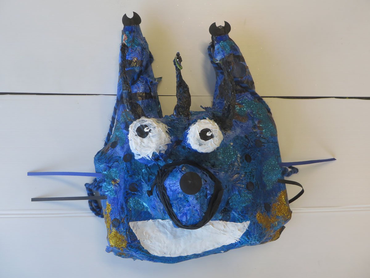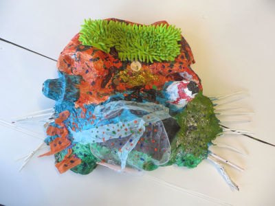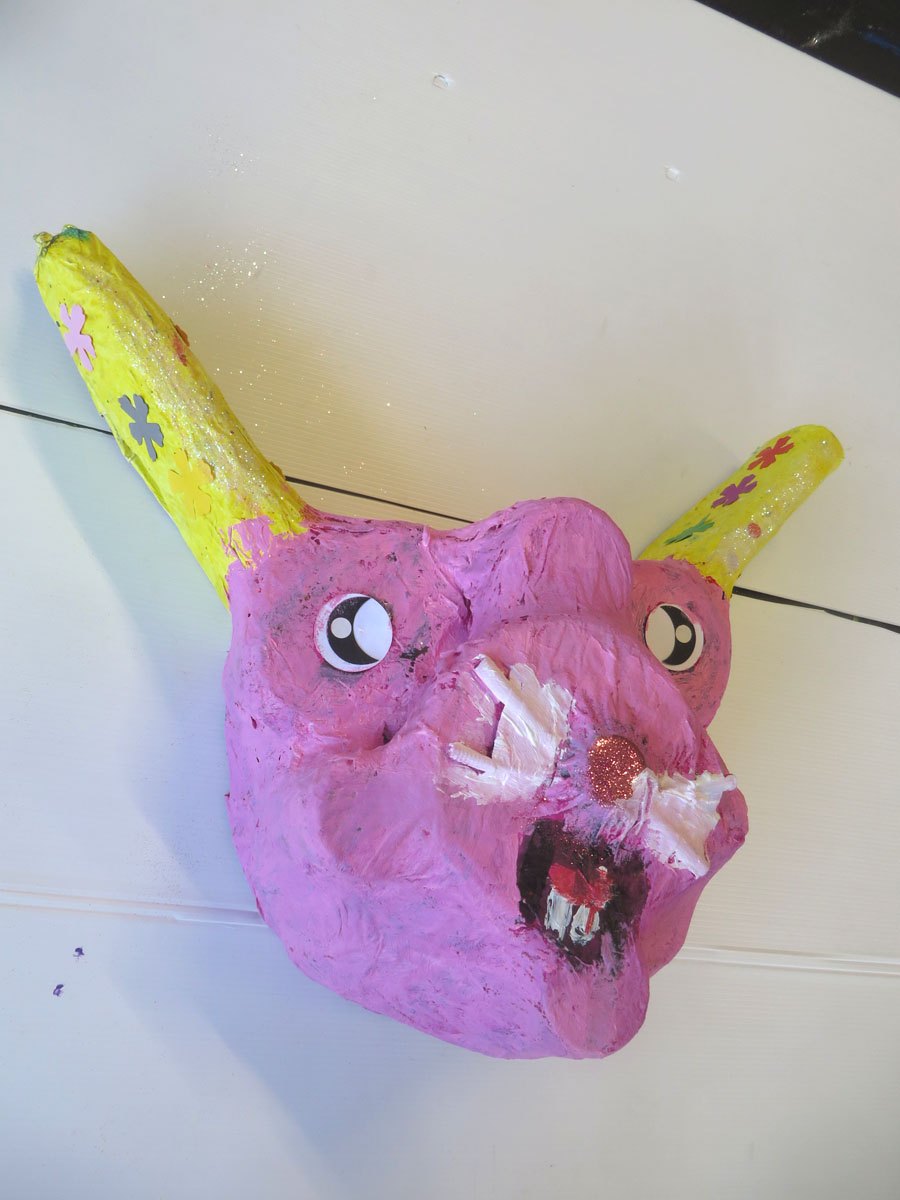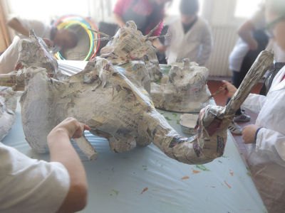 Les enfants modèlent un visage en argile.