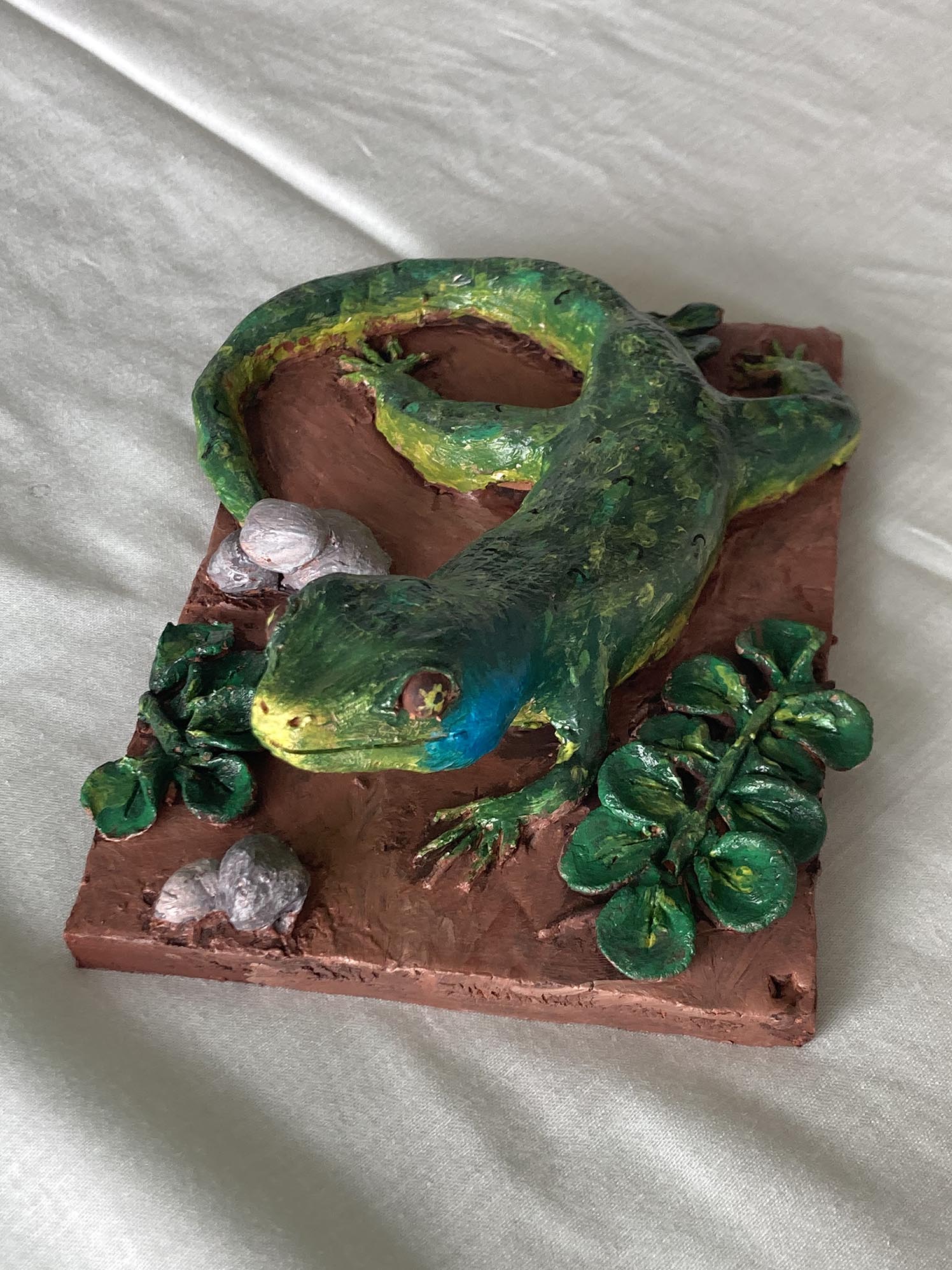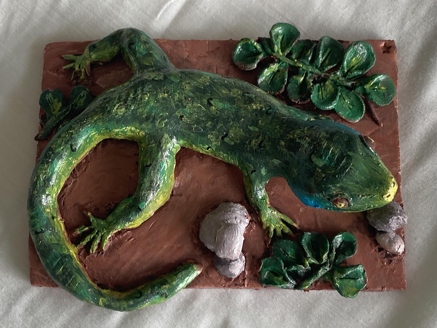 Mardi 24 juin 2025 dans le service de néphrologie : nouvel atelier modelage dont je n’ai que ces 3 photos, prises quelques jours plus tard car j’avais oublié mon appareil photo … mais la sculpture est tellement touchante ! La jeune fille qui a réalisé ce modelage s’appelle Lucie.